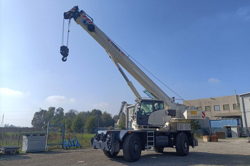 The new Terex rough terrain crane TRT 55US is an 55 USt max capacity crane with a main boom length of 123 ft. The model features the new TEOS Terex Operating System: on a 10” touch screen display, this new control system has a totally new user interface with improved information flow and accessibility, to increase customer’s operating efficiency.